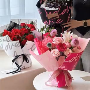 D25(01) Cursive Love Print Korean Sheet "White" (20 Sheets) 58cm x 58cm