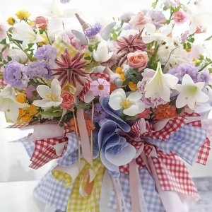 D11(04) One Side Check Print Frosted, L. Blue (20 Sheets) 58cm x 58cm