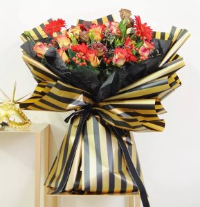 D14(01) Two Color Stripes Sheet, Gold & Black (20 Sheets) 58cm x 58cm