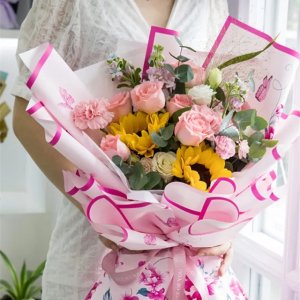D41(01) FLOWER PRINT FROSTED SHEETS "CREAM" (20 Sheets) 58cm x 58cm
